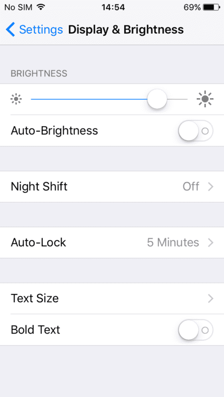 You can save some battery life by adjusting the iPhone’s brightness. A quick fix is to turn down brightness using the slider in Control Centre, accessed by swiping up from the bottom of the display. Drag the brightness slider down as far possible, but with a setting that still leaves your device usable.