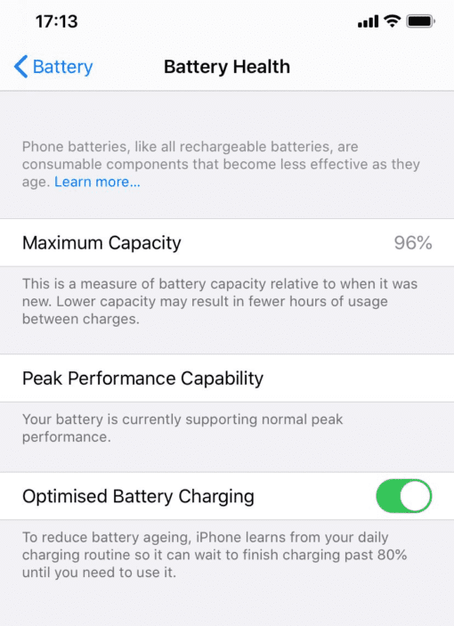 Apple explains that Optimised Battery Charging slows the rate of battery ageing by reducing the time that your iPhone spends fully charged.
